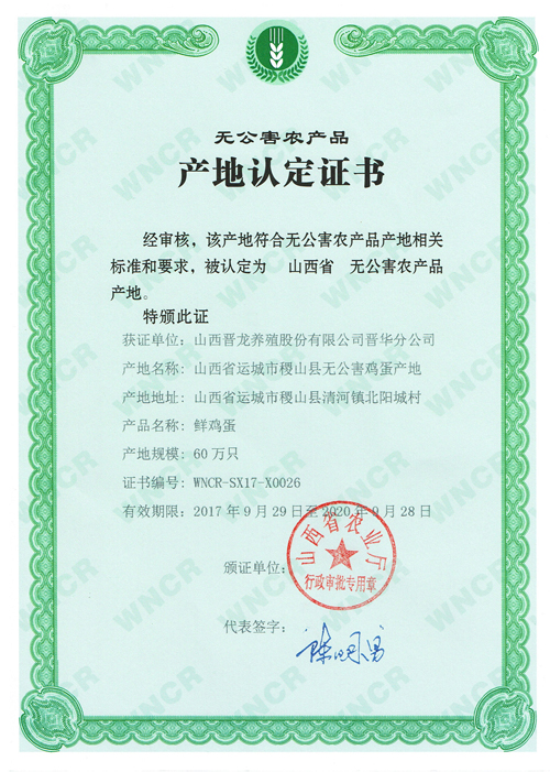 無(wú)公害產(chǎn)品認(rèn)證證書(shū)